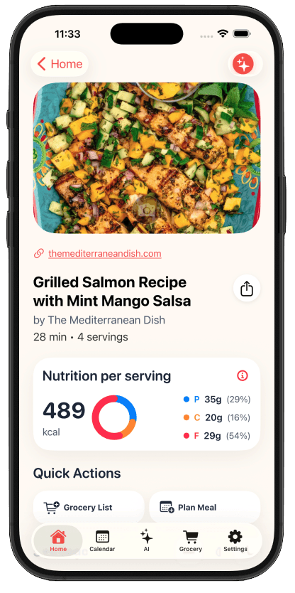 Import recipes from anywhere, plan meals and create grocery lists.